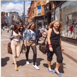 ②:They're walking to the bus stop.(他们正在走向公交车站。 | 彼らはバス停に向かって歩いています。)